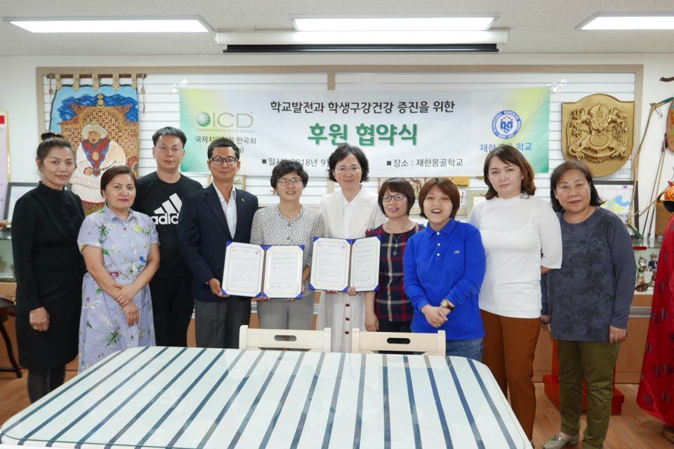 재한몽골학교와MOU협약을 통해 학생 구강보건향상을 위해 구강건강증진교육과 불소도포, 구강용품후원등 초,중,고학생들에게 지속적이고 효율적인 구강보건상식교육과 관련 자료를 제공키로 하였습니다.